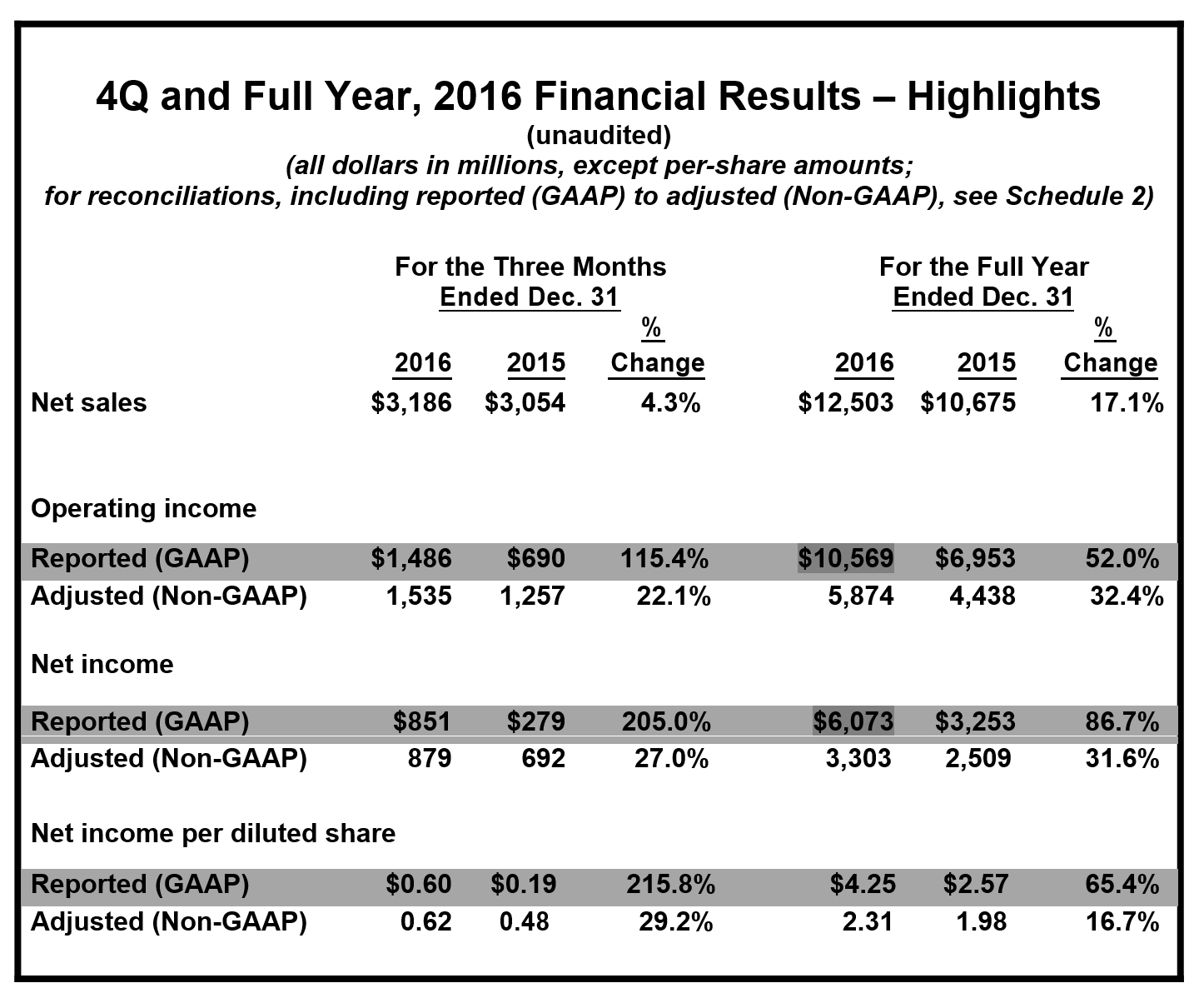 Reconciliations of reported (GAAP) results to adjusted (Non-GAAP) results are detailed in Schedule 2 and Schedule 3 of this press release.